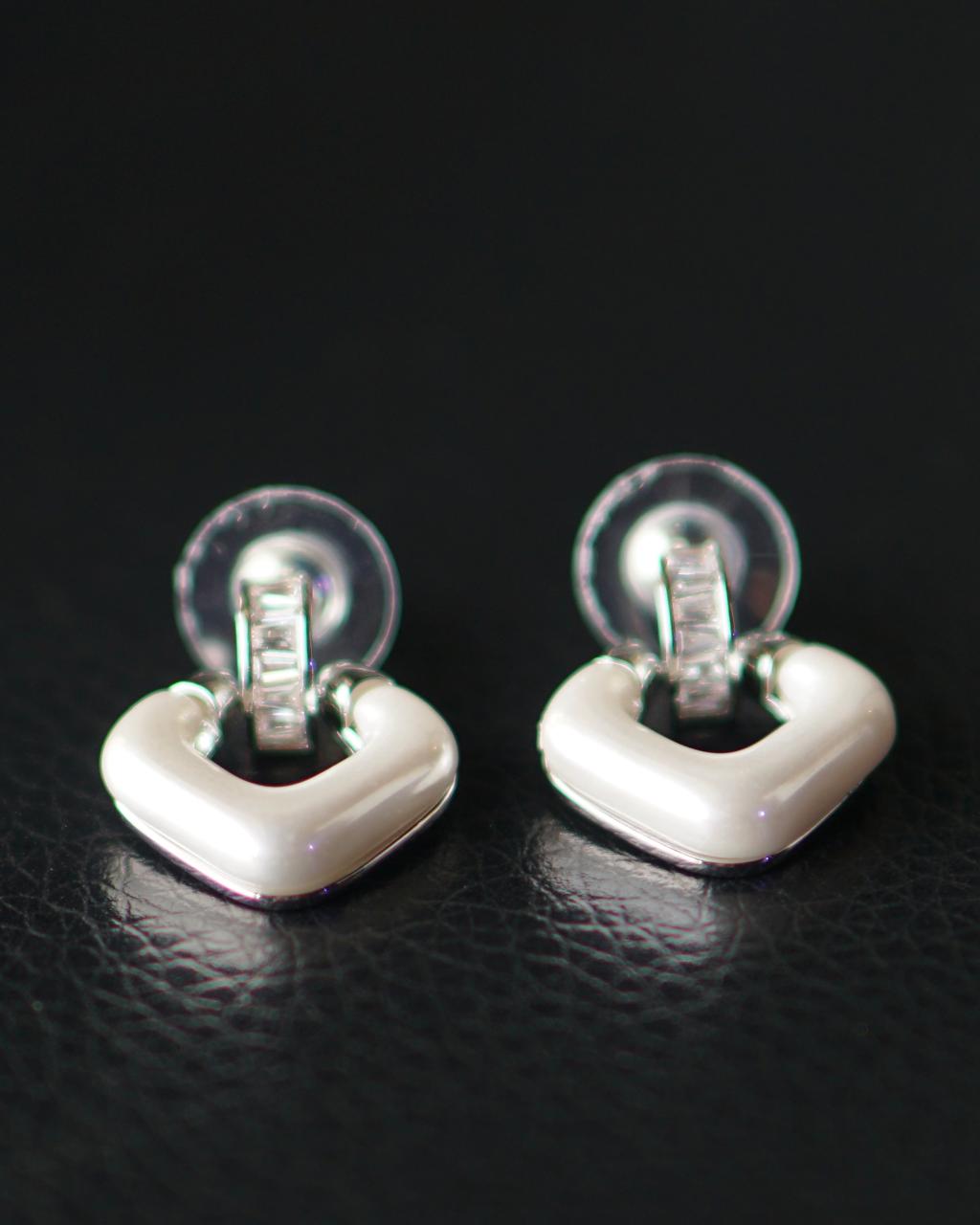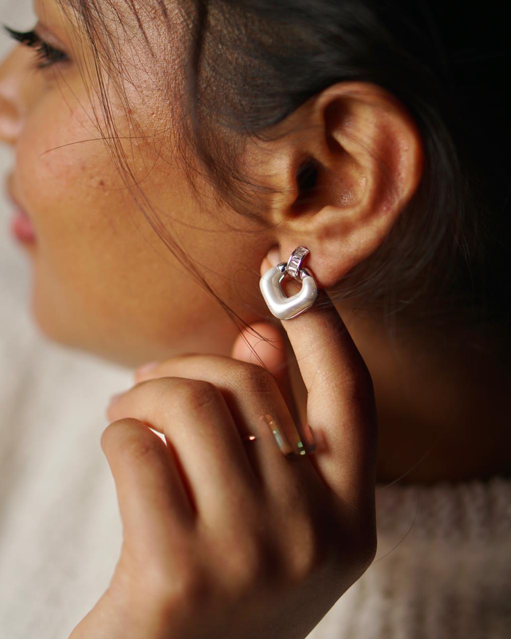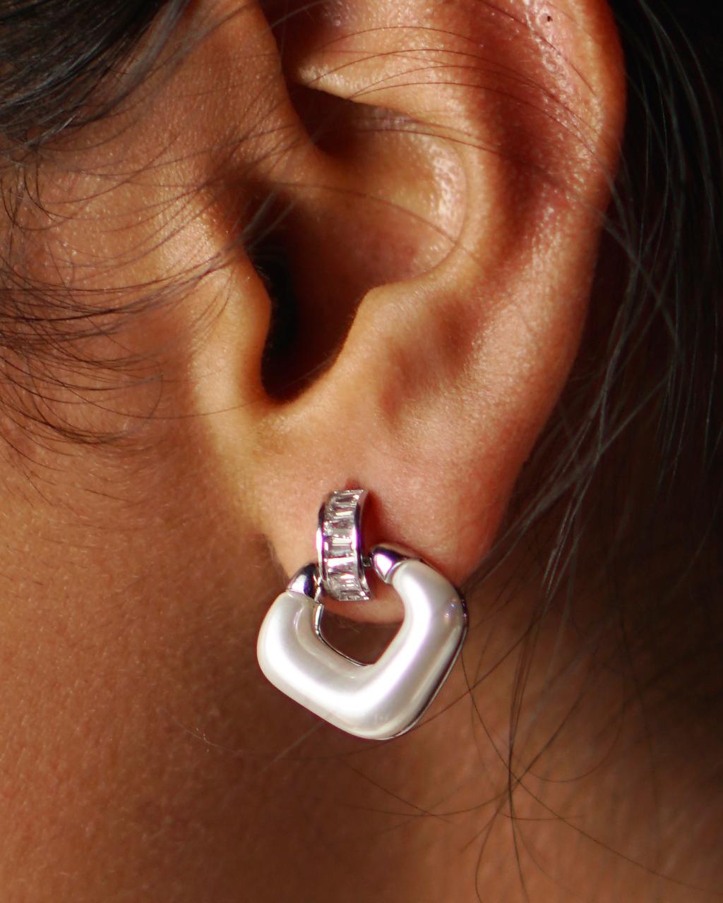 Not everyone deserves your energy—these icy white geometric hoops agree. Sleek, glossy, and crowned with rhinestone drama, they’re the perfect clapback to boring accessories. Bold. Sharp. A little dangerous.