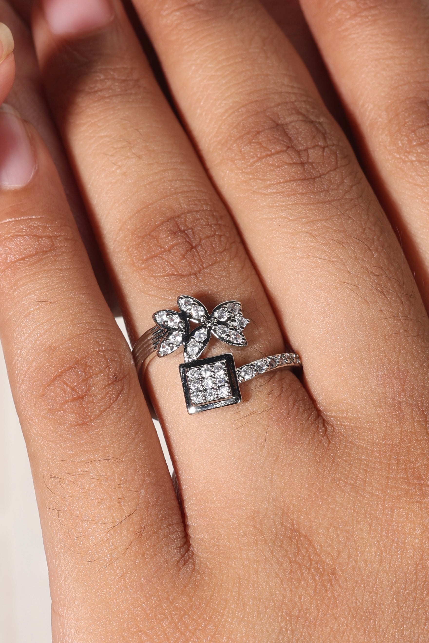 The Fleur Ring by Evoque Jewels is a perfect mix of elegance and charm. Designed with sparkling cubic zirconia stones, it features a delicate bow with a shining square centerpiece. Light, comfortable, and easy to style, this ring looks beautiful whether you wear it daily or for a special occasion.