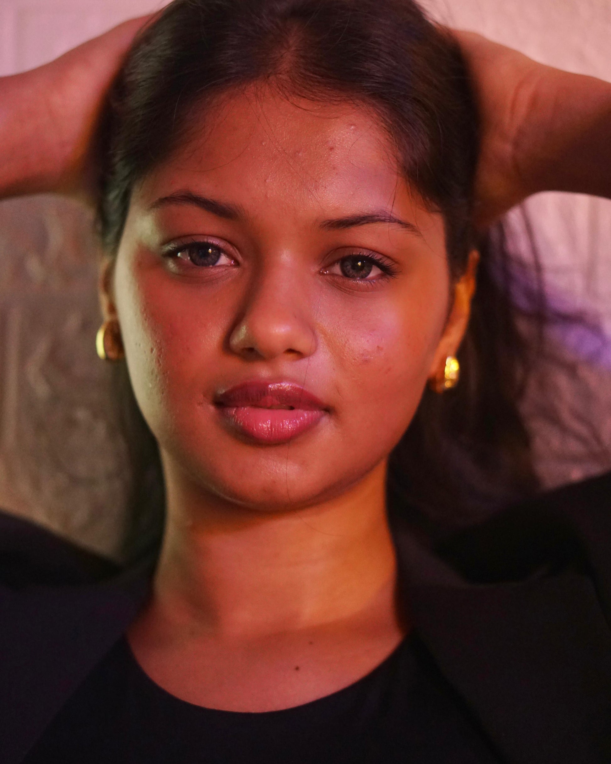 Whether you’re wearing a blazer, a bodycon, or bare skin, Gold Glitch is your go-to for raw, runway-ready energy.