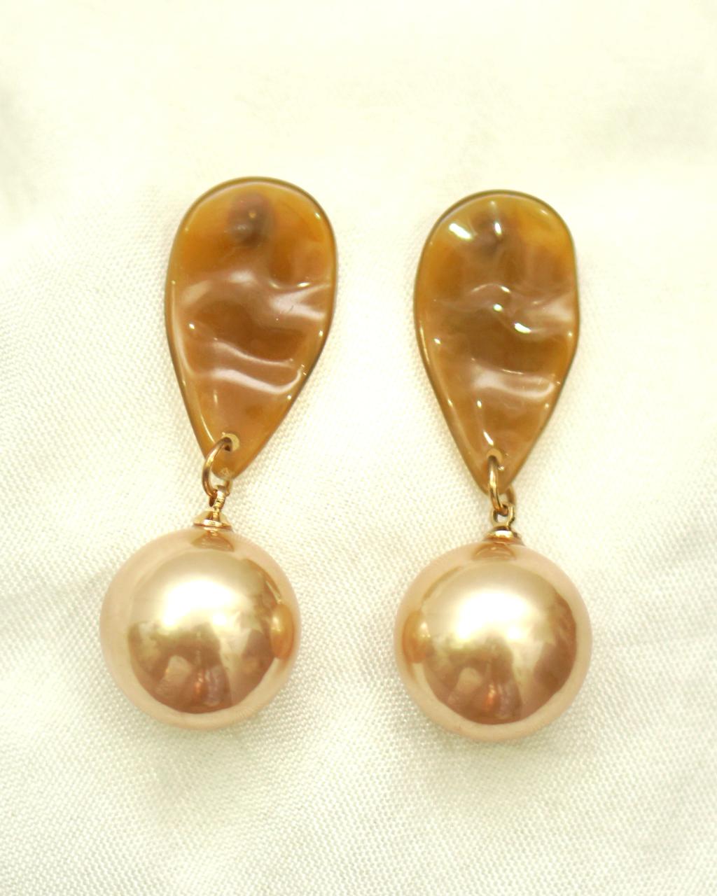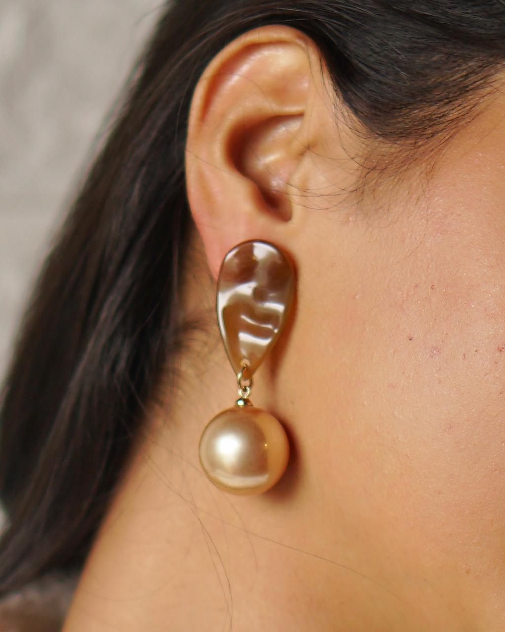 Golden Hour Drop earrings are where art meets elegance. Featuring an abstract, molten gold-textured top and a rich champagne pearl drop, this pair is designed for women who love to stand out. The unique melted-metal look brings an artistic edge, while the soft shimmer of the pearl adds a touch of grace.