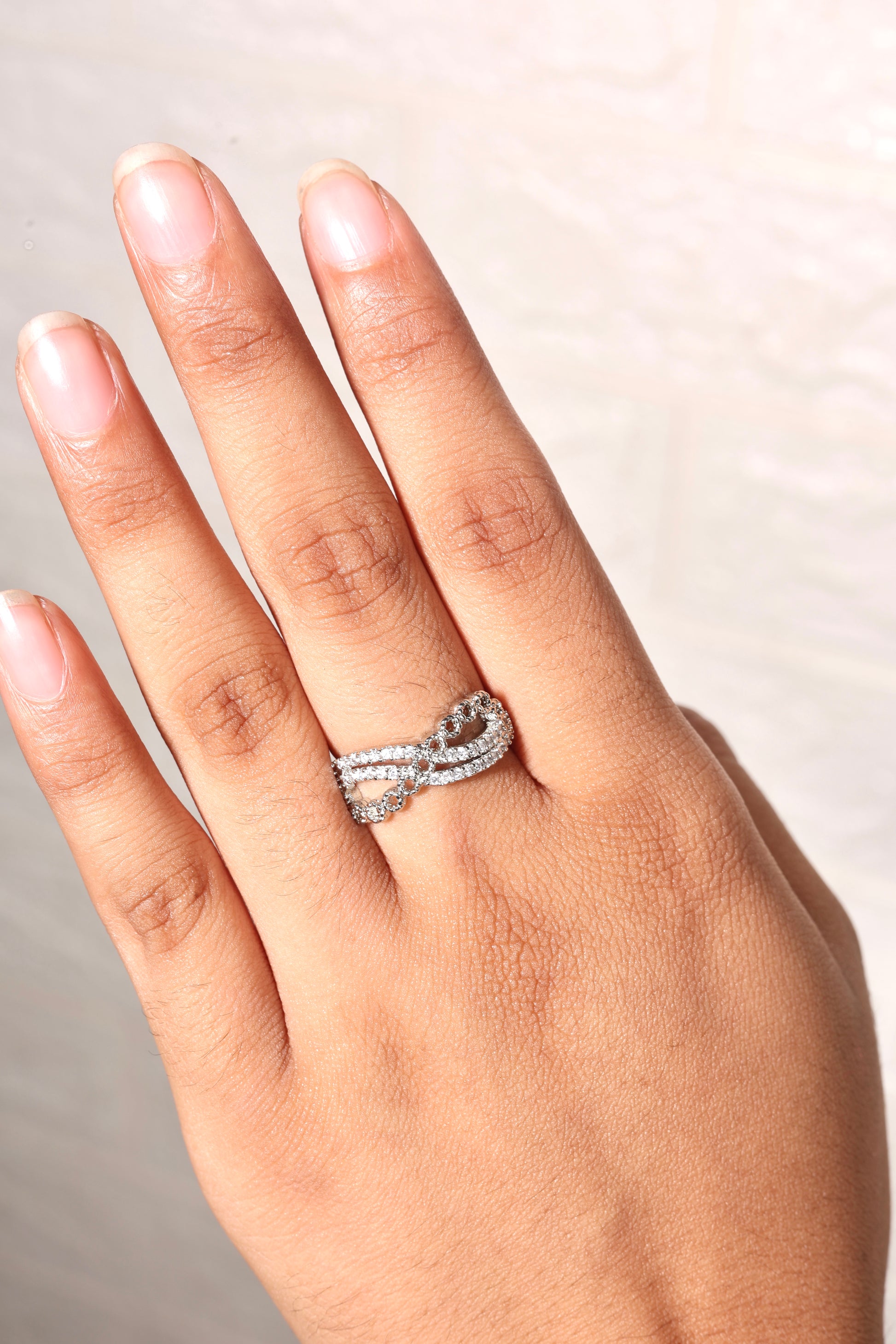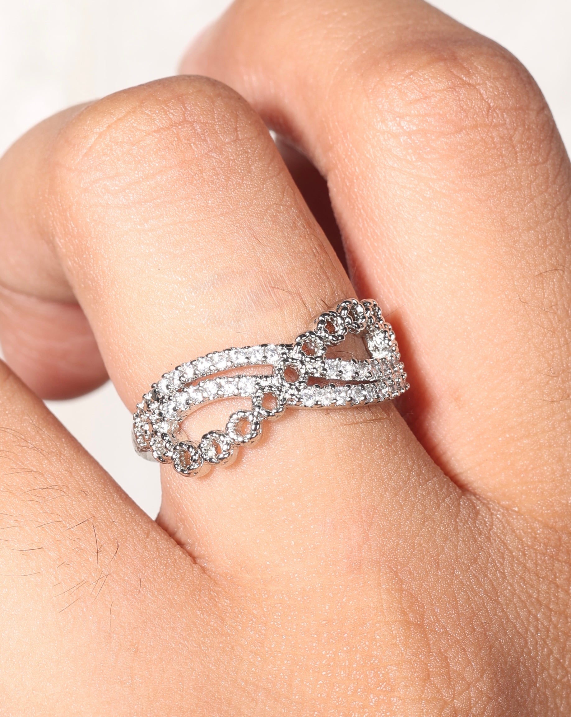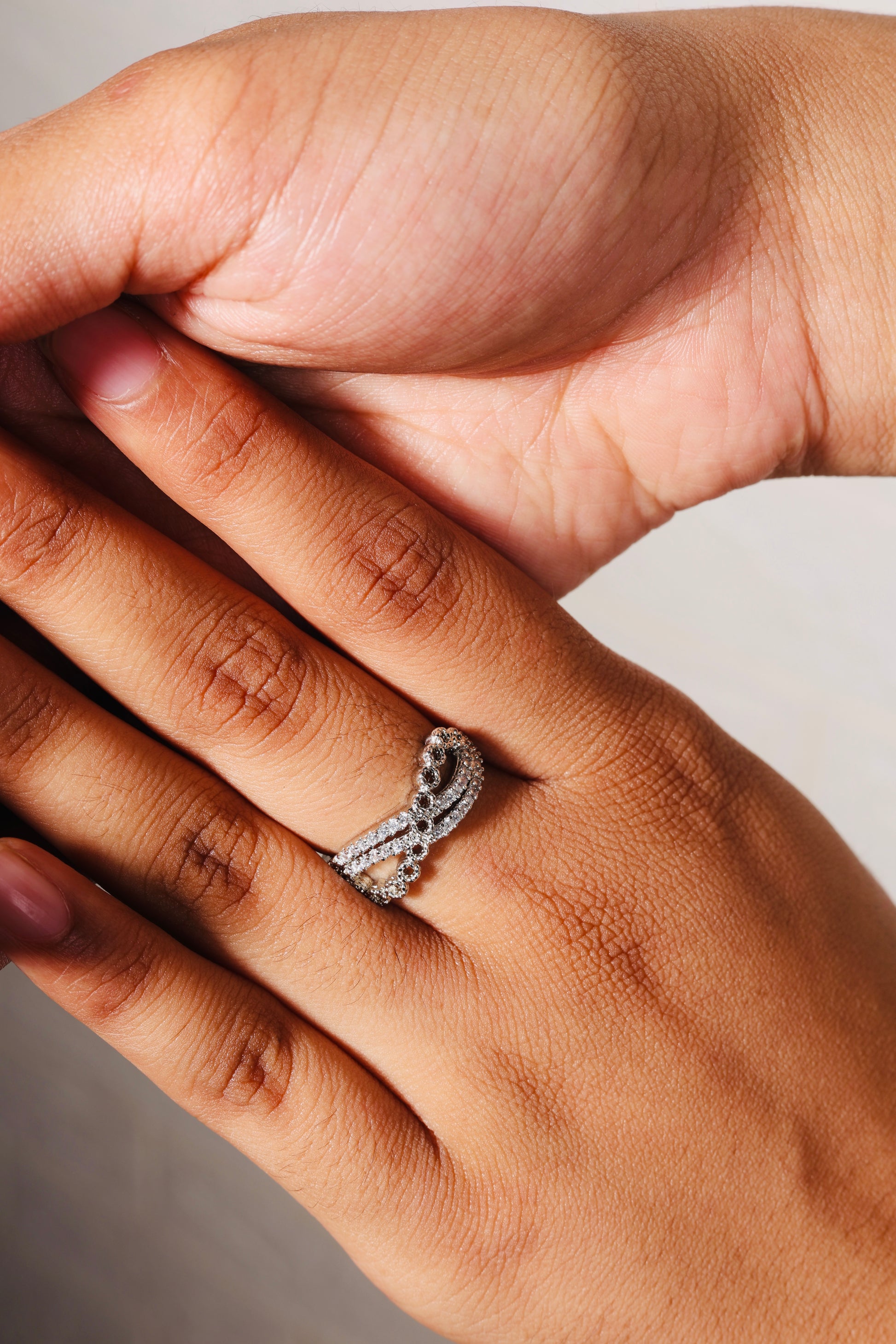 Mysterious. Dazzling. Irresistible. The Masquerade ring is inspired by the allure of hidden elegance, with interlacing curves and sparkling stones that mimic the drama of a mask. A statement piece that lets you play bold while keeping it classy.