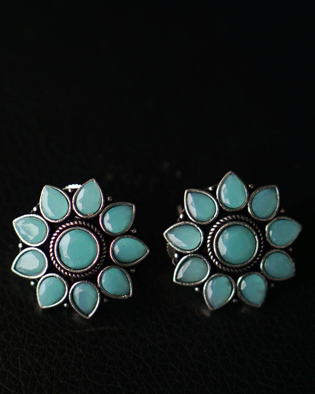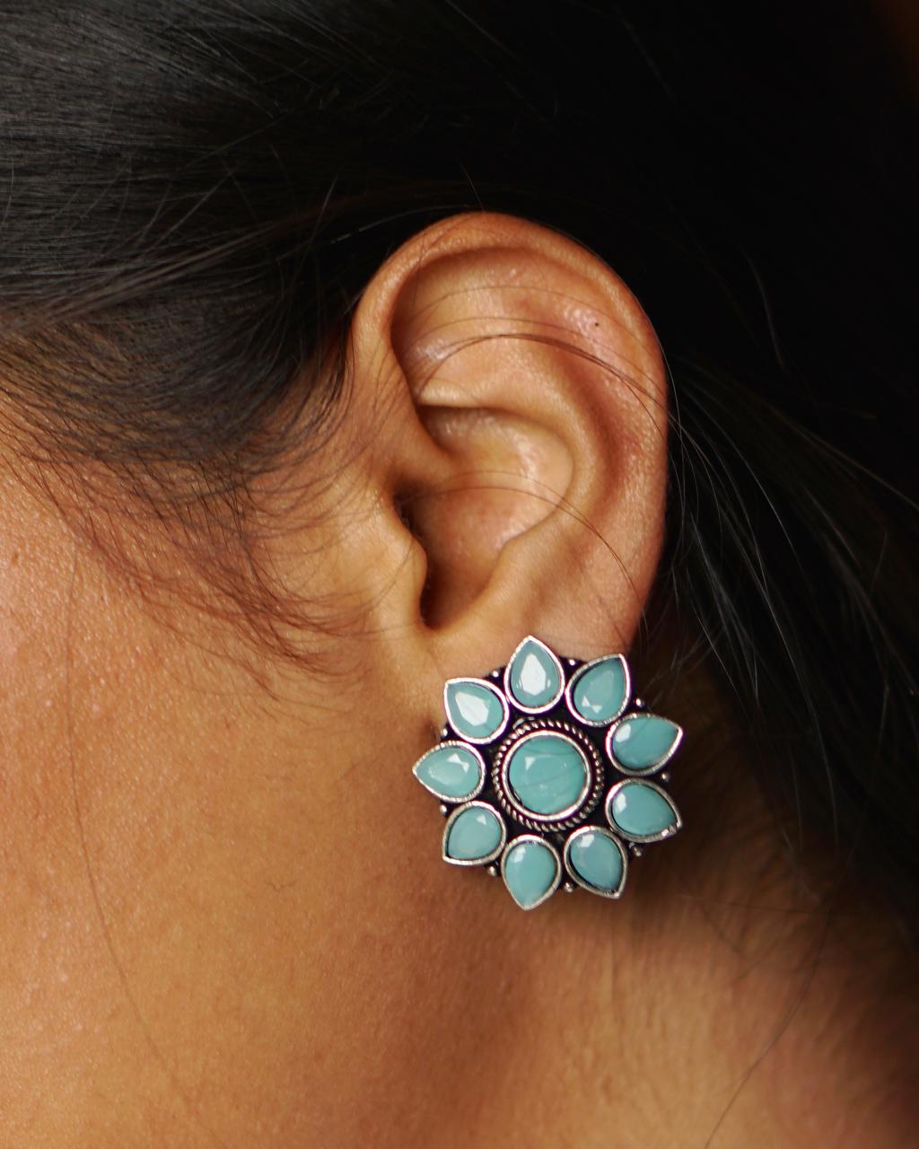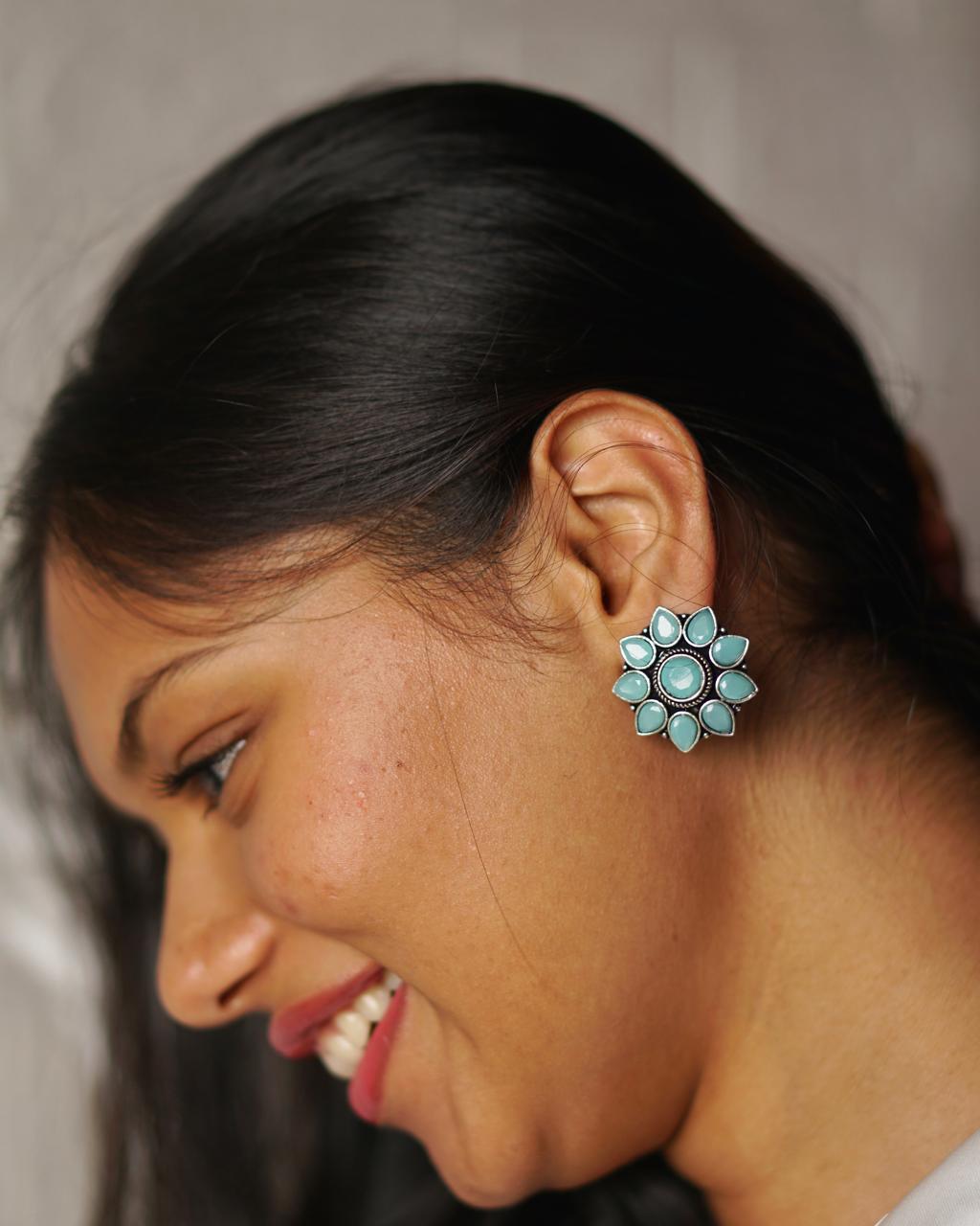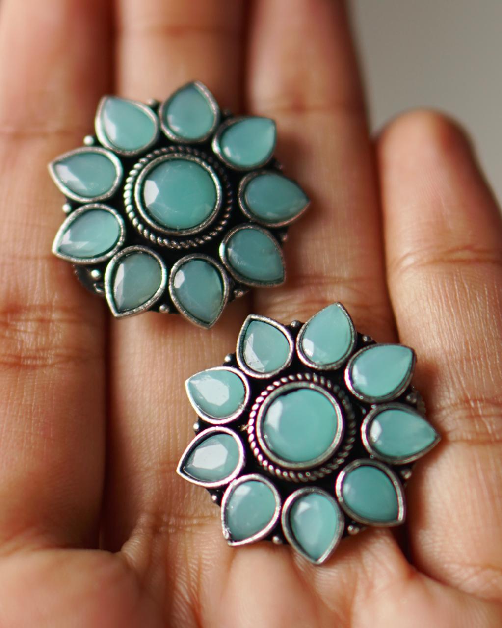 Mint Condition is your daily dose of pretty with power. These mint-green oxidised studs bloom like a rebel lotus — bold in shape, cool in vibe. They’re lightweight but built to turn heads whether you're on campus or at a last-minute brunch.