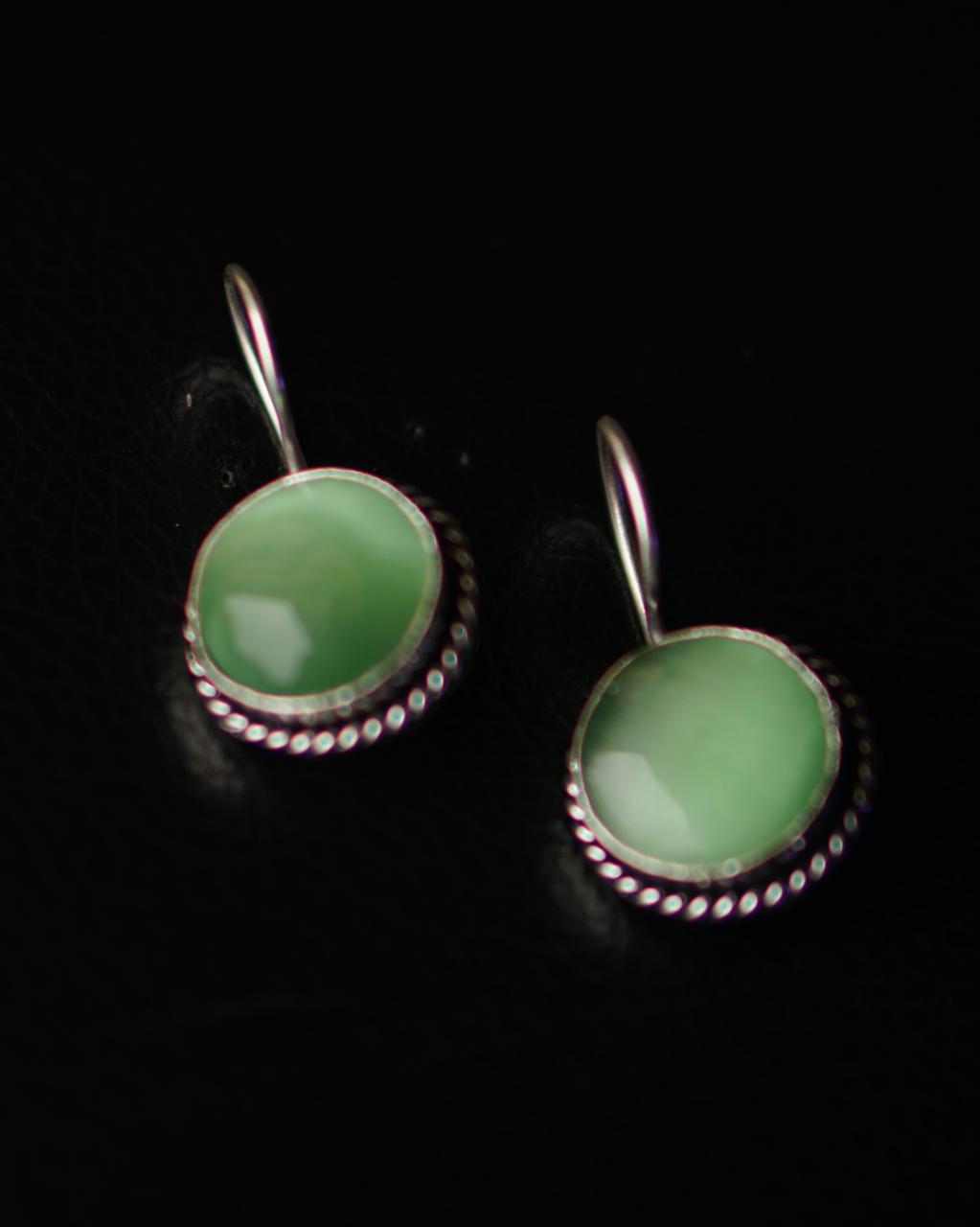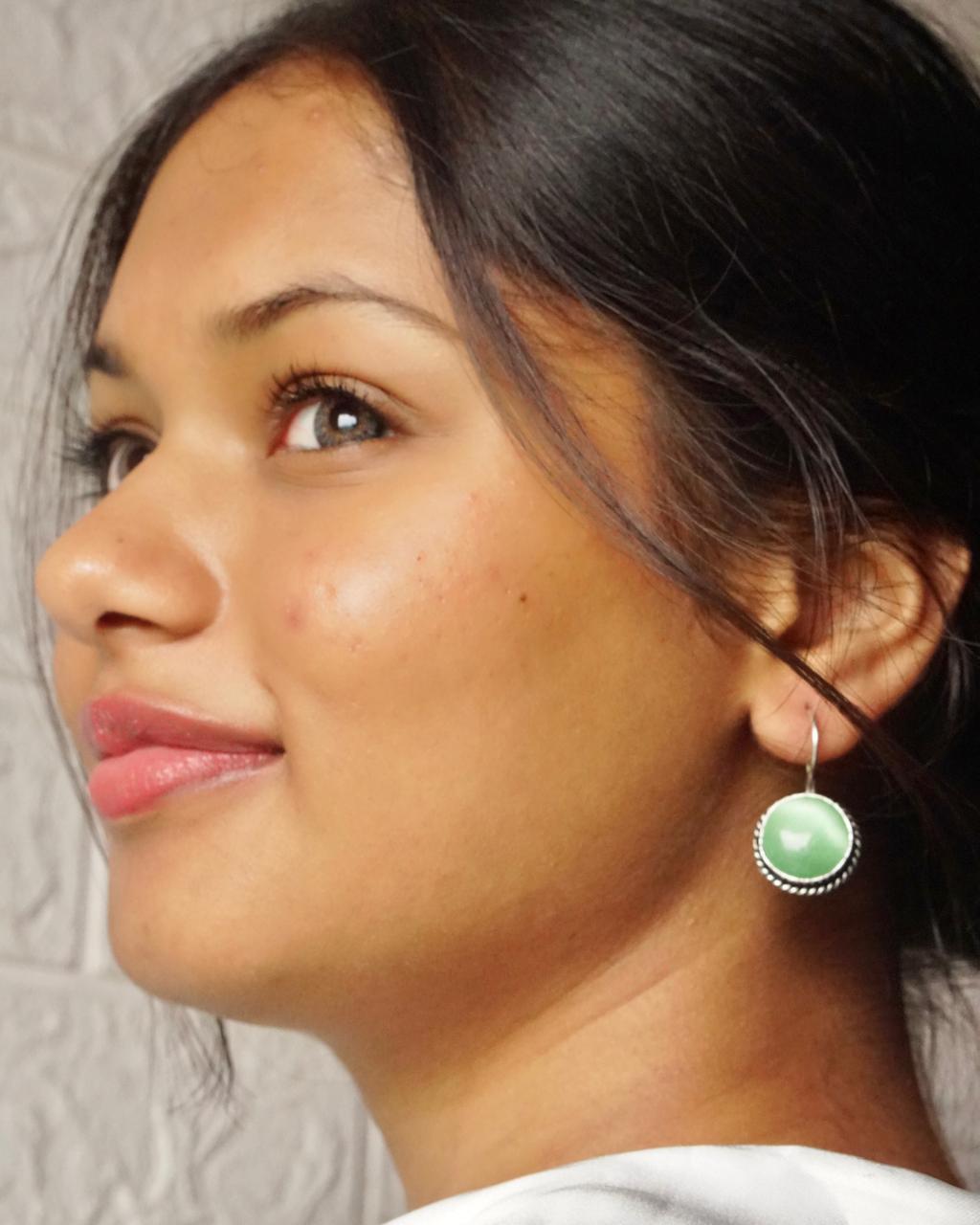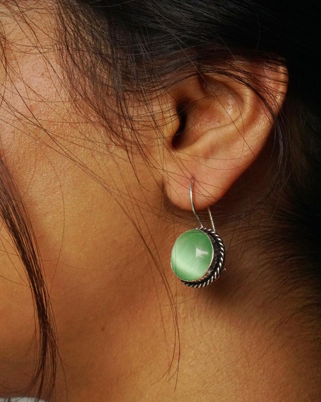 These earrings are not your typical dainty drops. With a bold mint-green stone that catches the light like it’s got secrets, and a twisted oxidized silver bezel that screams “I bite,” Poison Ivy is a whole attitude.