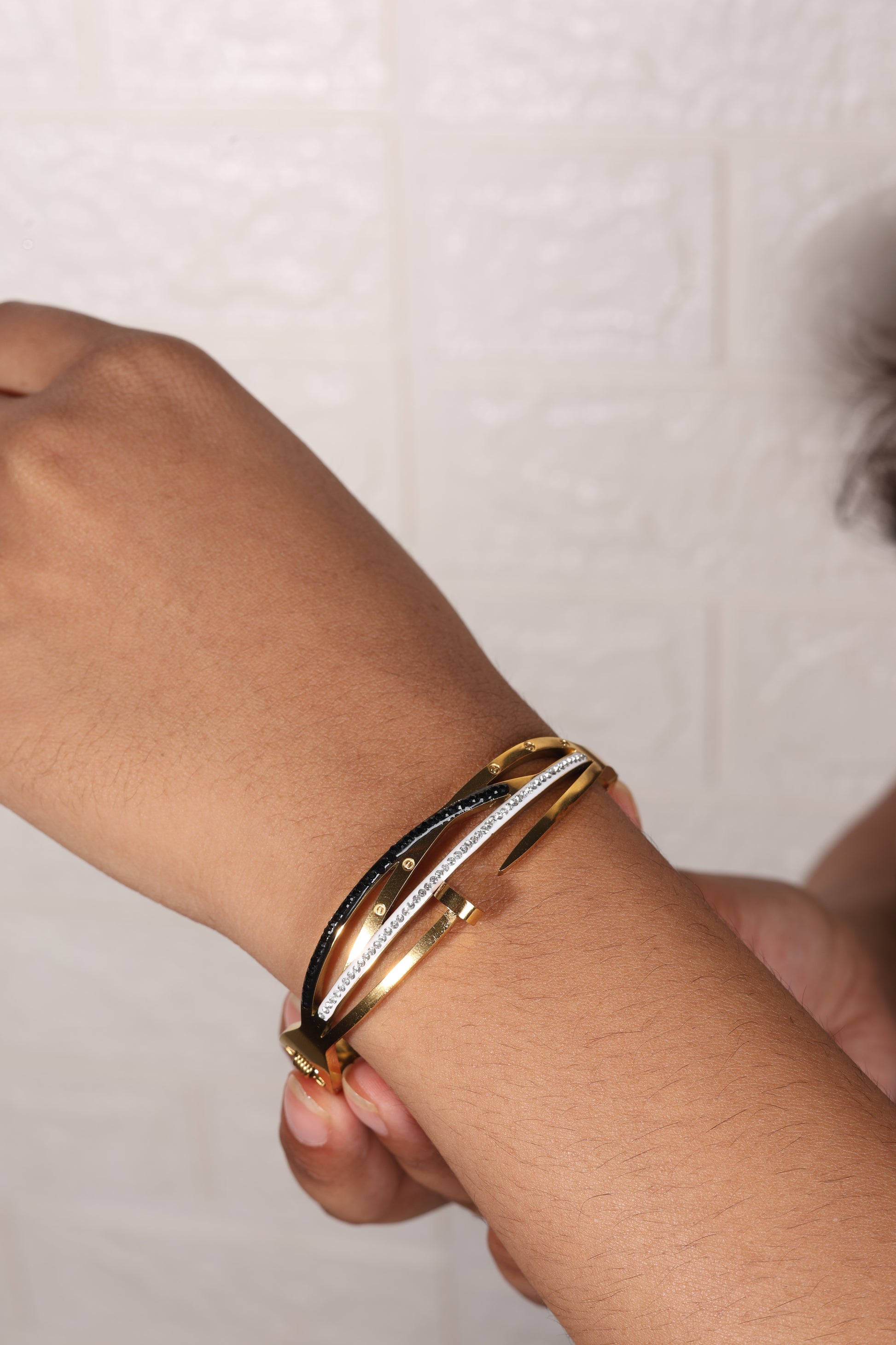 Unleash bold elegance with Evoque’s Vyper bracelet, a striking fusion of gold, black, and silver tones. Designed for women who love statement jewellery, this sleek piece wraps around your wrist with a powerful edge. Perfect for parties, festive looks, or daily wear, Vyper is more than just a bracelet-it’s confidence you can wear.